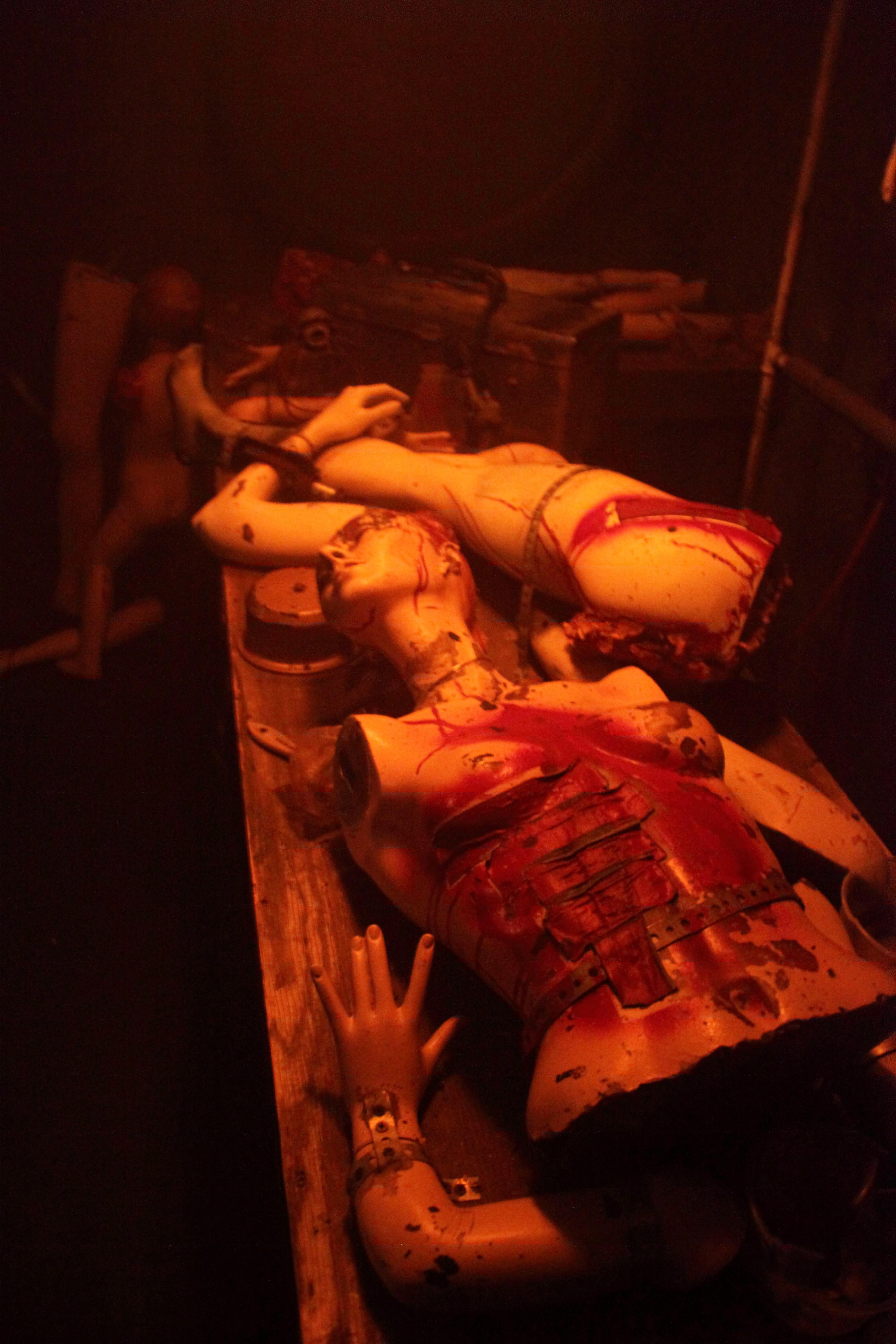This year we were the only ones inside the maze which made a big difference compared to our experience last year. Most of the monsters act out scenes to create a sense of creepiness, but we were rarely startled, which isn’t necessarily a bad thing as each maze is to designed to offer guests a different experience. The highlight of the maze is the back-bending, backwards-walking doll girls who are extremely disturbing to look at. There are some elaborate scenes, such as the doll sewing room and mannequin freezer, but many are showing their age and wear from the years of use.