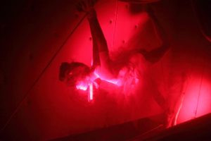 Last year, we were thoroughly disappointed with our experience inside this maze. It was low energy and we even saw one monster accidentally scare another. However, this year Lockdown is by far the most improved and even scariest KSF maze of 2011! The monsters were rampaging all over, literally chasing us down the dark corridors where it almost became hard to catch our breath between scares. While many of the scares in this maze still rely heavily on the monsters hiding around the corner, they accented their scares with loud banging and had two sided walls where they could scare you twice around the same corner. The loud sirens and mix of flashing lights and dark rooms added to the maze’s disorientating effect.
