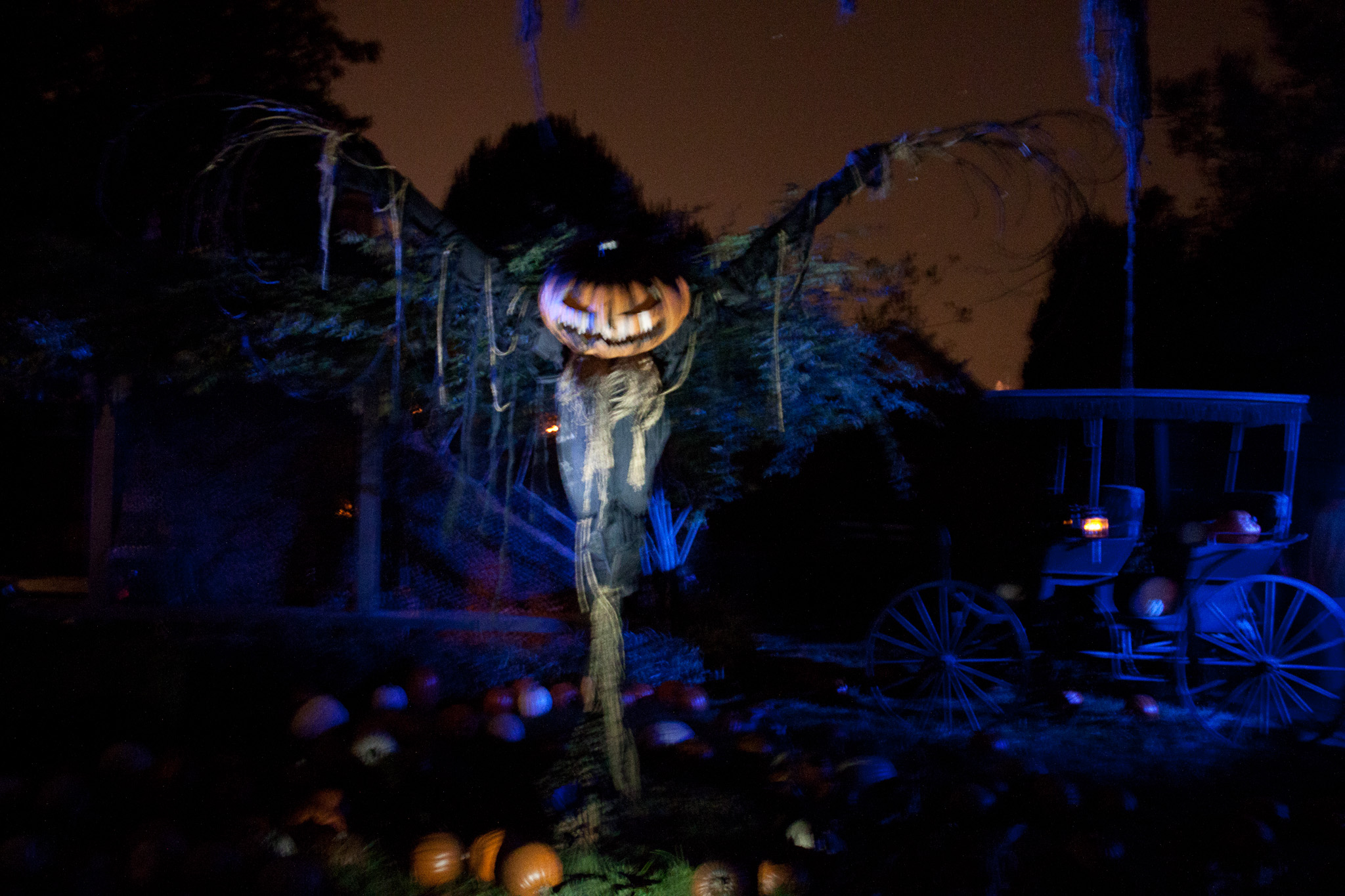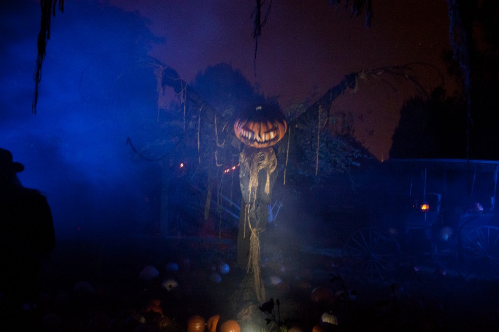 After leaving the children, you enter the estate grounds where men in old-time Western wear wield the Winchester rifle in your face. Towering scarecrows with Jack-O-Lantern heads loom above to create an impressive scene. The lighting throughout the maze was great and really set an eerie and haunting tone.
