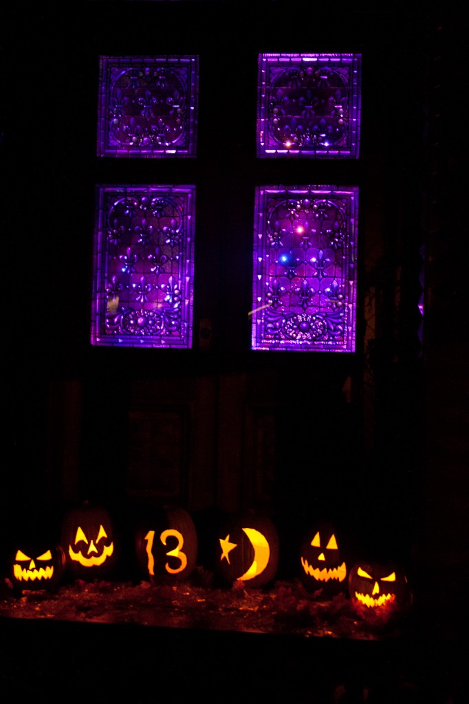 The attraction begins in front of the house, where you encounter the caretaker lurking about the porch. Ambient lighting in the windows of the house and rows of Jack-o-Lanterns really pull in the Halloween theme right away. This is actually part of the line, but it sets the tone and spirit for the attraction immediately.