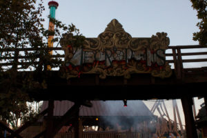 We were excited to see the Evil Dead being featured at Knott’s, and believed the log ride was the perfect setting for this theme. To our disappointment, this ride ended up not featuring much in terms of a haunt layover. There was a slight increase in the number of monsters and a few new props such as the infamous “Book of the Dead.” But it’s obvious that the CAL-OSHA crackdown on monsters being stationed along the flume and management’s push to keep haunt from interfering with the experience of day-time guests have taken their toll. Outside of the soundtrack and a few nods to some iconic scenes in the movie, the ride really could of been any haunted cabin in the woods type of theme. It also didn’t have any kind of consistent story line as they just made the scenes fit wherever they could along the flume and in the mountain.