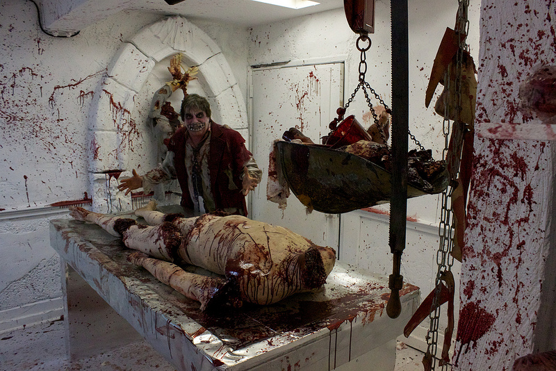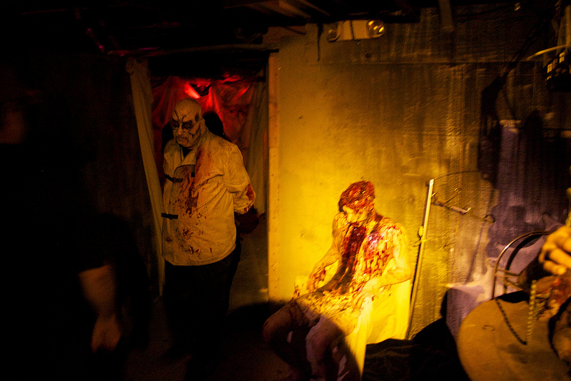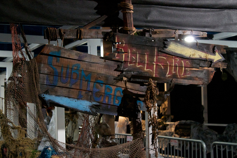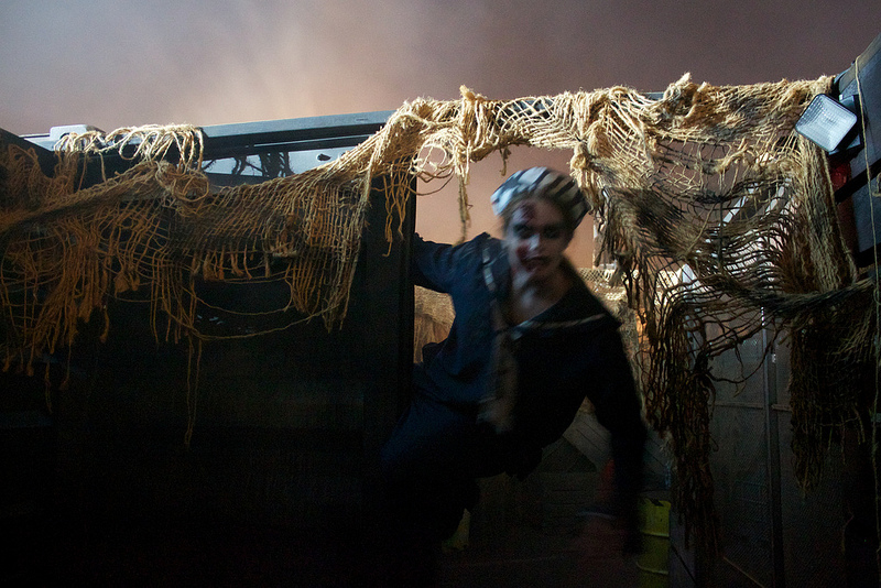 In previous years, the story of this maze was about a virus breakout on the ship that infected passengers and crew, which was fitting since the maze takes you through the ship’s actual infirmary. This year, they’ve changed up the story a bit, and it’s now about Samuel, an insane shipmate who was put in confinement and later found ripped apart. The maze has an insane asylum type of feel, and the actors go around alternately yelling at you to get out and then pleading for your help. The closed-in spaces of the ship make for some good claustrophobic feelings, but overall we didn’t find this one to be too scary.