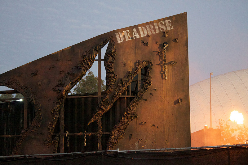 Queen Mary has done a great job this year with their addition of the new maze “Deadrise,” which ties in perfectly with the other mazes and the overall theme. The new monster mascots are also a nice touch. Although we missed the entrance and the Barricades scare zone, they’ve improved the overall layout of the grounds, grouping several food vendors together and adding picnic tables, which we found to be a nice place to sit and catch our breath after screaming in the mazes. There are bars serving alcohol and a stage with live music, so the event holds a lot of activities to fill the night.