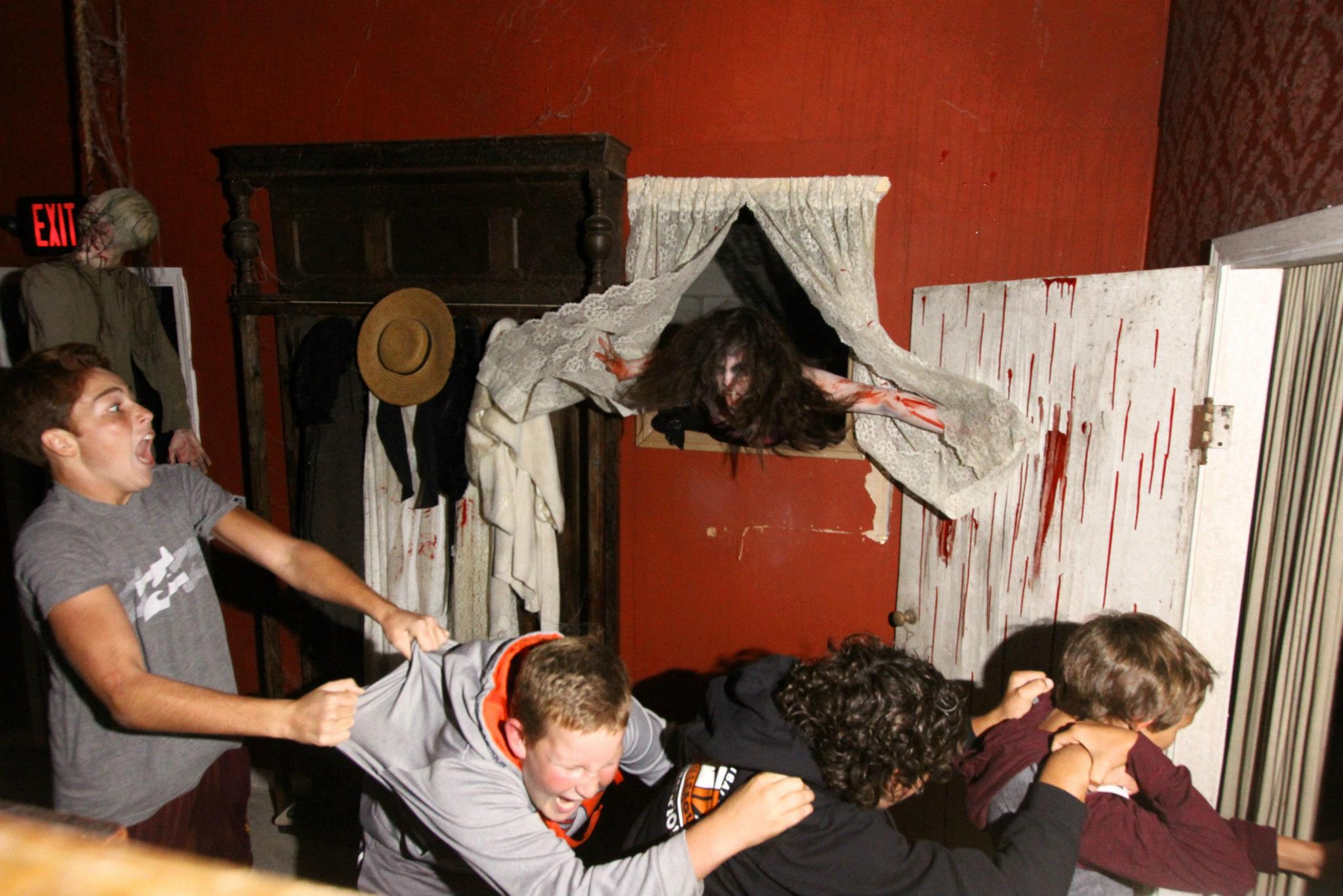 We next entered The Haunted House, which has a traditional Victorian-style haunted mansion feel. The elaborate sets made us want to stop and admire each room, but the creepy actors kept us moving. This maze is a mix of actors and animated props, which works pretty well. One addition involving curtains that open on their own was particularly freaky to us. We can’t say enough about the level of detail in this maze. You could go through several times and see something new each visit. There were some good scares here, and they’ve even added a candid photo opp, where they take your picture as they scare you. The post the pictures up on Facebook, so you can download yours for free, which is a nice alternative to the typical $15 other haunts charge for awkward posed photos.