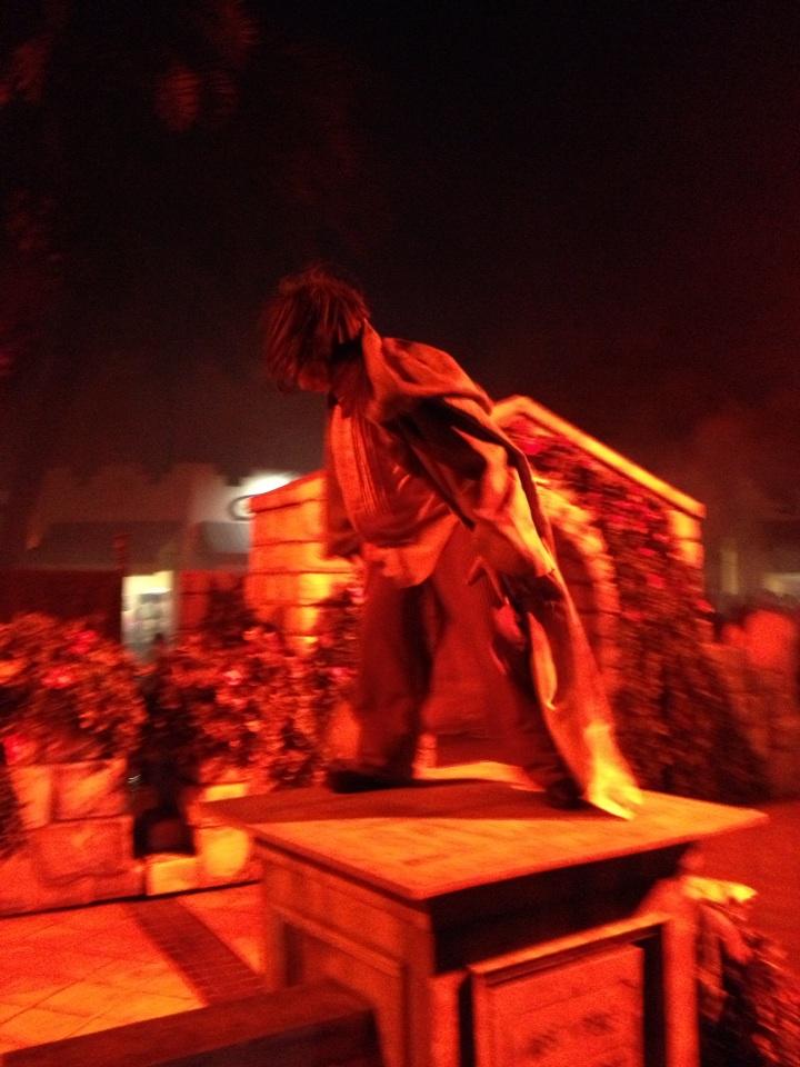 After the headaches of HHN the night before, we were glad that we purchased the Front of Line (FOL) passes on this night. We went on a Thursday night but unbeknownst to us the following day was a school holiday, so as the night went on the park became extremely packed. With the combination of bratty kids, barely legal drunks, and a few over assertive guests the night could of been a disaster, but the HOS staff seemed pretty adept and prepared for this crowd. We also liked that throughout the night guests could still buy FOL passes if they started to feel overwhelmed by the lines. The park is very big so it helps with the crowd flow and we recommend in any of your future visits that you pick a path around the park and hit all the mazes and any rides you want to ride along the way as doubling back can be both time consuming and tiring. We did find some sections of the park to be difficult to navigate as they were extremely dark which is probably because they’re trying not to disturb some of the resting animals but it was also hard to find some of the mazes and there are a couple dead-end walkways.