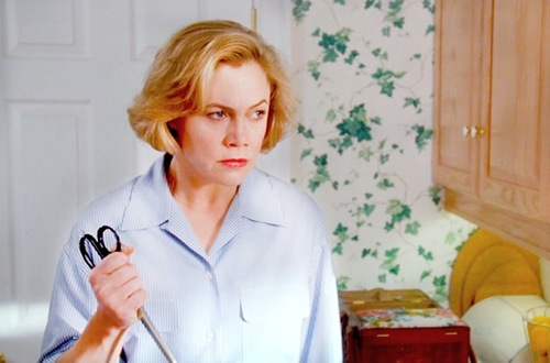 Carrie’s religiously devoted mom bible beats the hell out of her daughter but it’s all done in the name of the lord to prevent Carrie from getting hurt. Unfortunately when Carrie rebels against her mother’s preaching and decides to showcase her telekinesis (and “dirty pillows’ ) at the prom it turns out that mother was right all along.