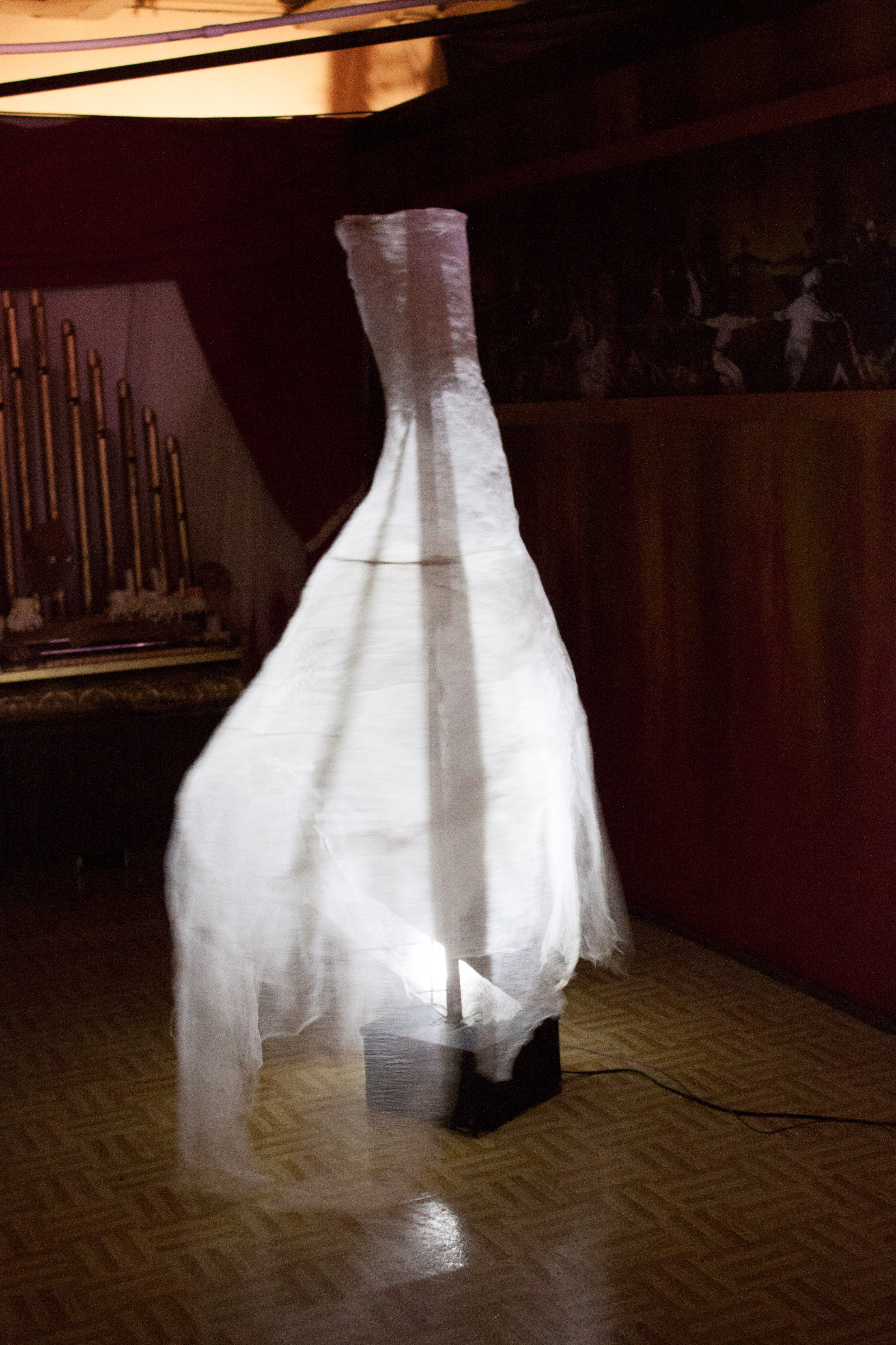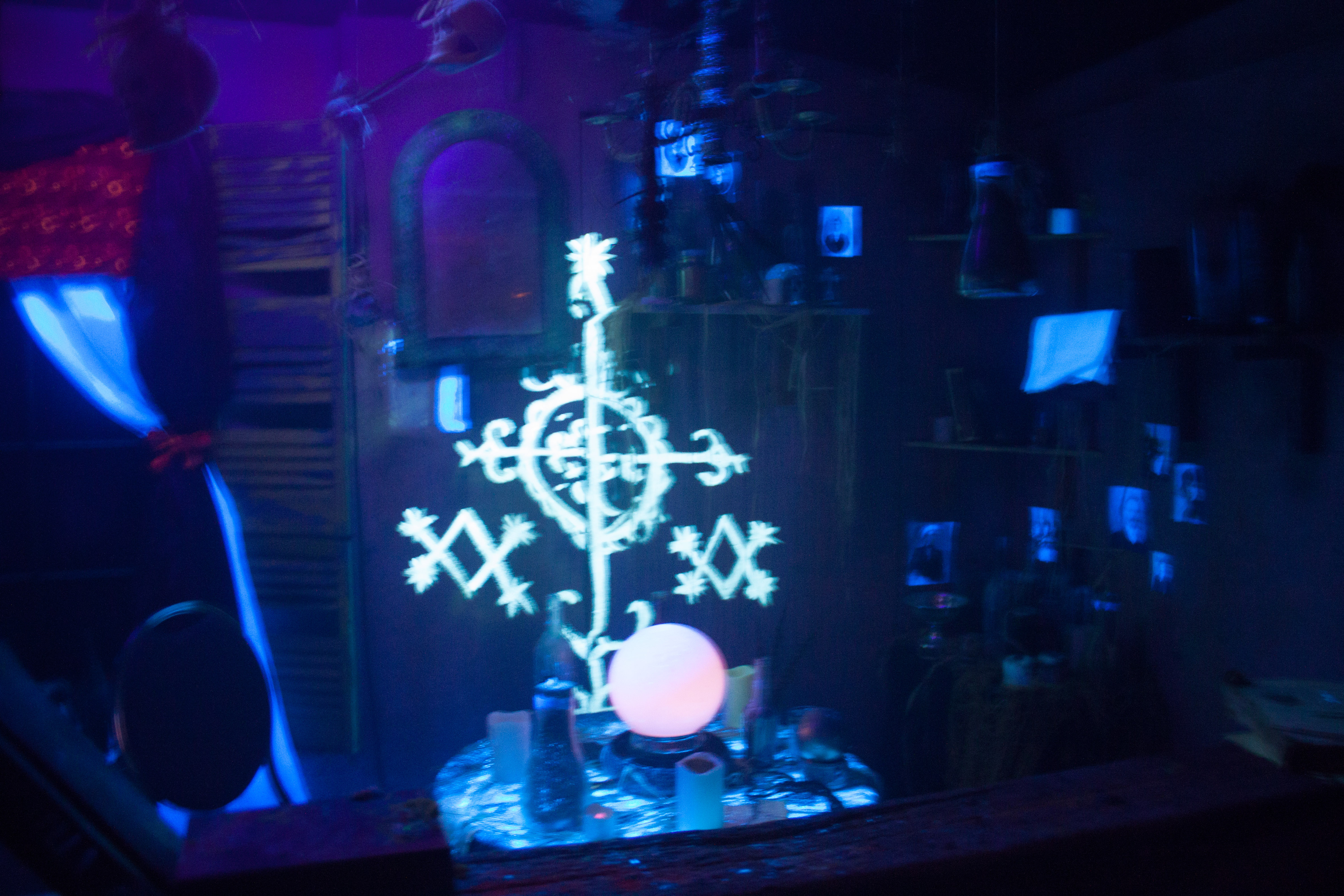 Graceful Gale is the main character of “Soul Mate,” which tells the story of Gale’s gruesome search for the perfect dance partner, which seems to involve severing the various body parts of different men to create one perfect mate. The maze begins with a video that tells the story of Gale in a cartoonish sort of way. Although it was a cool idea to provide the backstory, the audio of the video was very bad and we could barely hear that narration. The narrow corridors of the maze were covered with fabrics in an attempt to make them feel more lush and also to cover up all the metal siding that runs throughout this area of the ship, but many of the scenes feel too sparse and lacking in detail. One exception is Gale’s dressing room, which reveals a creepy Gale gazing at herself in the mirror. There’s also a very impressive ballroom scene, where Gale’s men surround the entire perimeter of room…but which man will step forward for the dance? We got a few good scares in this maze this year, and Gale was looking more creepy (and sometimes more manly) than ever.