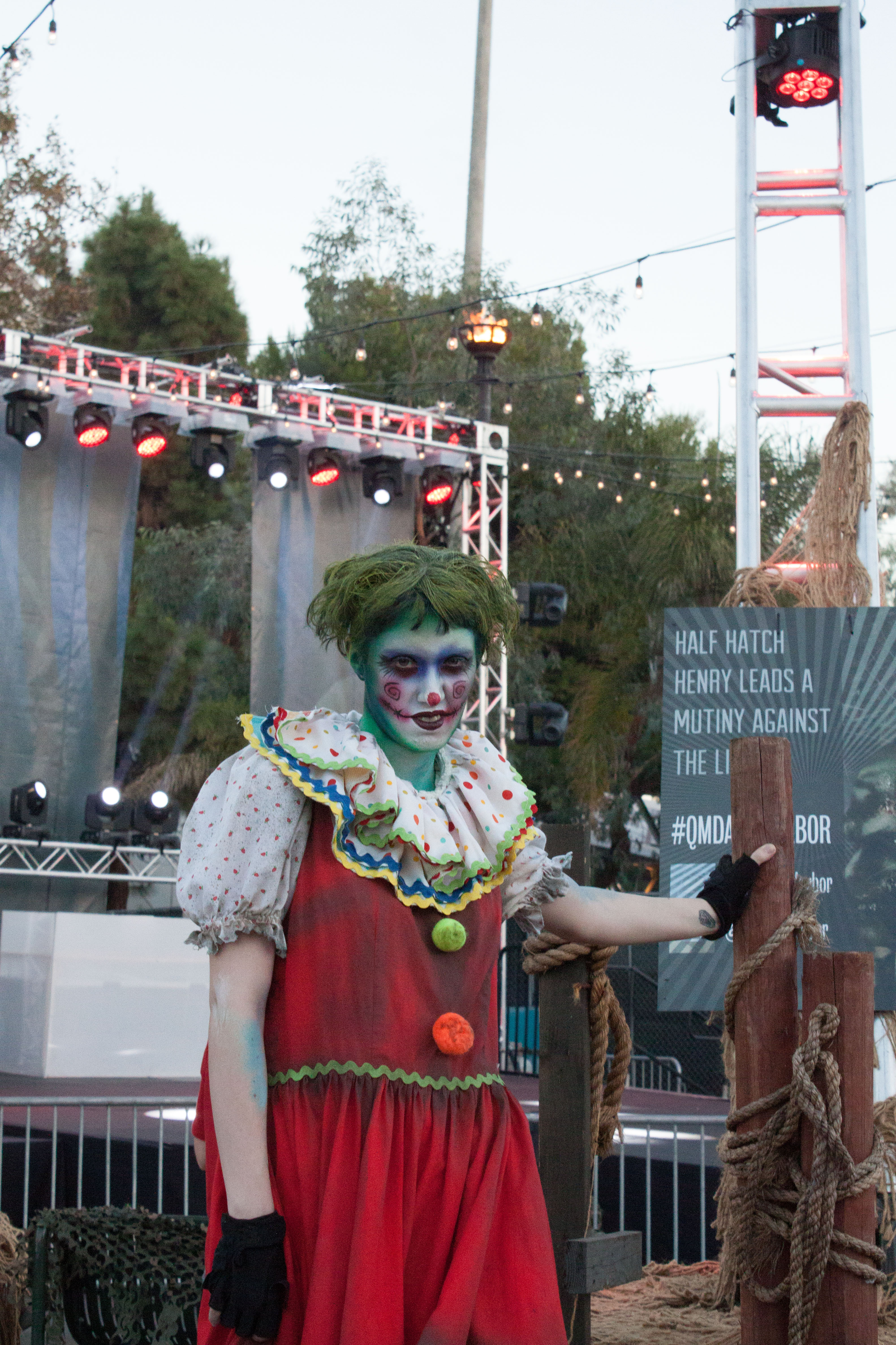 Standing near the private cabanas, listening to the live show taking place on the main stage and enjoying the eerie red lights glowing from the swings above us and the sudden, atmospheric pulses of fire shooting out from the impressive Deadrise attraction behind us, it struck us how downright enjoyable Queen Mary’s Dark Harbor has become over the years. Each year, we write about the impressive mazes and the well-themed and immersive nature of the entire haunt. But one thing we noticed this year is the fact that Dark Harbor is one of the easiest and most relaxed haunt experiences in the area. The small footprint of the event means there’s not a ton of walking or riding escalators up and down all night. Food, drinks, and cocktails are all within easy reach. There are entertainment and food areas that promote an overall atmosphere of fun, but not in the frenetic, overwhelming way it can sometimes be at say, Halloween Horror Nights. And for this