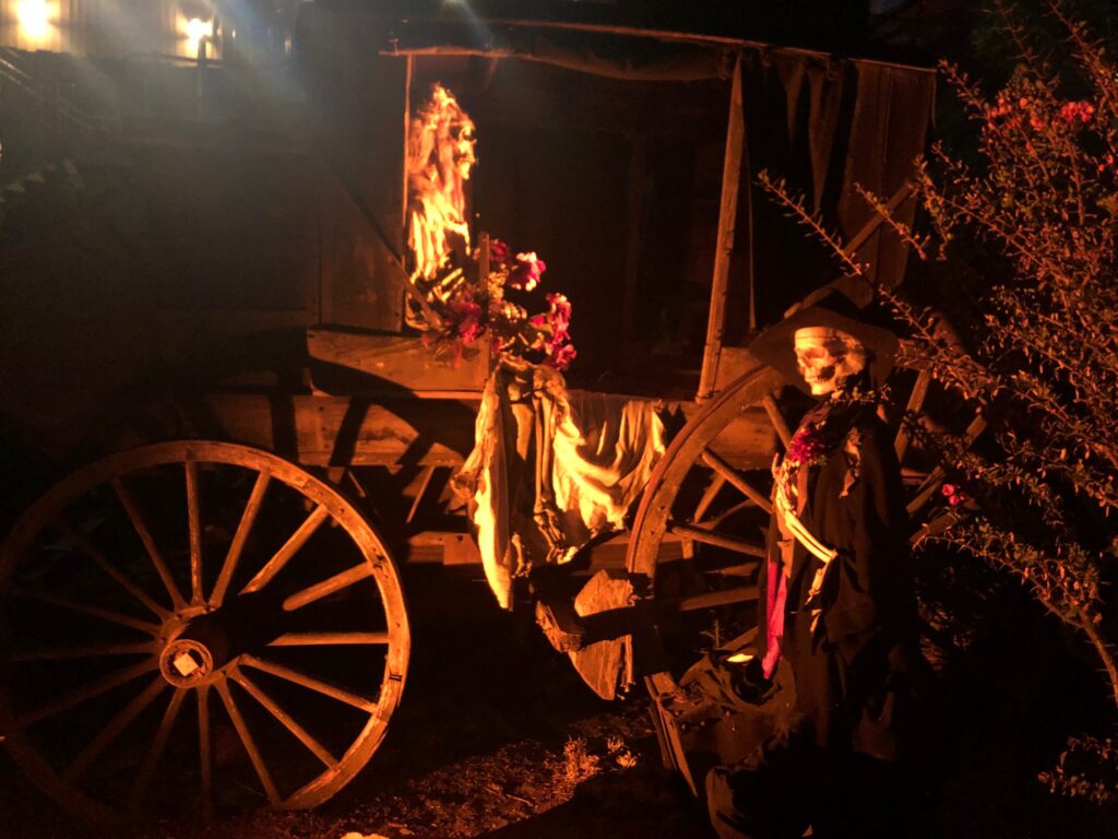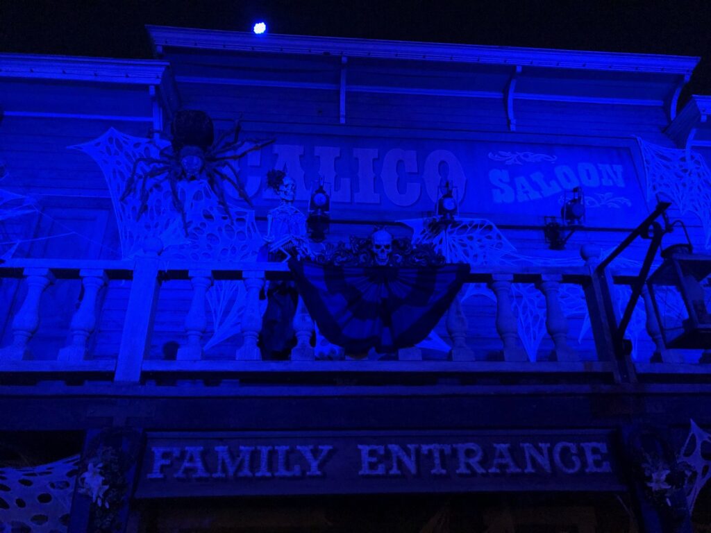 This is the maze that Knott’s has been working to perfect. The theming begins with the queue entrance in the Calico graveyard and carries through the opening courthouse scene into the climatic ghostly transformation of Calico from a bustling western town to an eerie Ghost Town. The settings are impressively immersive with fully detailed rooms and superb lighting effects. The design and special effects are top notch even surpassing many of the mazes we’ve seen at some of those movie studio theme parks. The cast is diversely talented with full scripted actors and energetic monsters. Many different types of scare tactics are effectively used for some very startling moments and fun scares. Oh and the legendary Catawampus also makes a cameo!